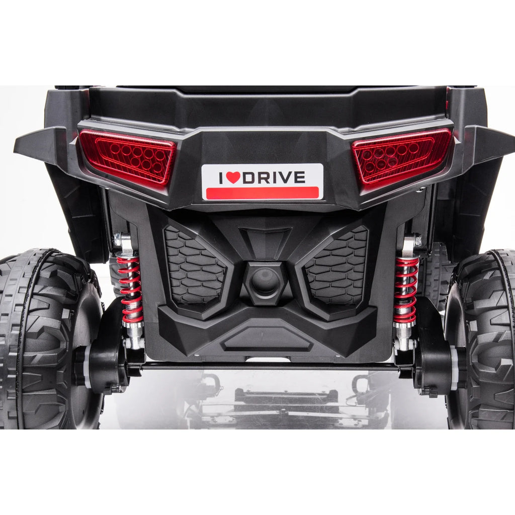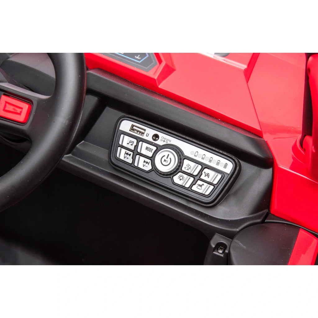 This Red 12V Jeep-style ride-on buggy delivers the perfect mix of power, control and rugged design for young drivers. With a reliable 12V 7Ah battery and four 380 motors providing genuine 4WD support, kids enjoy smooth performance on driveways, patios and backyard terrain.