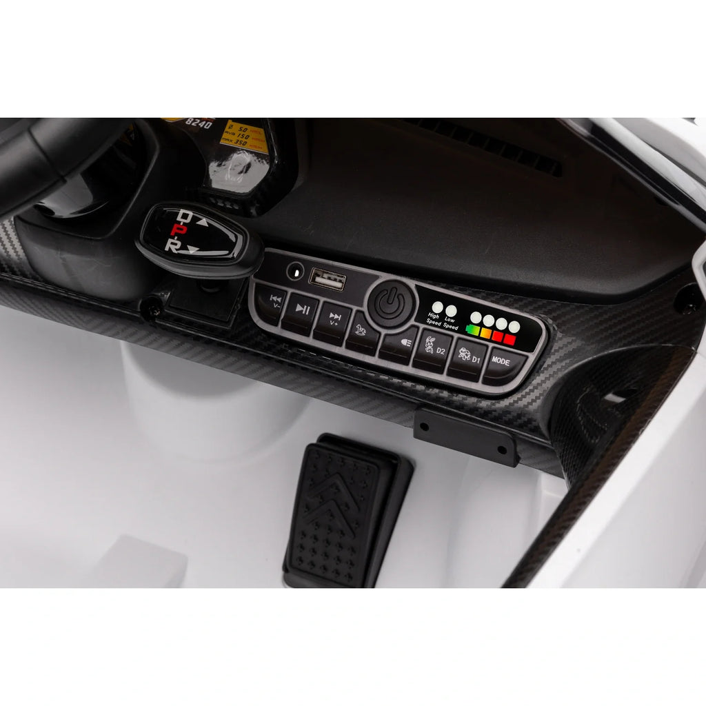 Give your child a taste of Italian automotive excellence with the Licensed 12V Lamborghini Veneno – White Edition. This premium electric ride-on captures the unmistakable design of the real Veneno, complete with upward-opening hydraulic scissor doors that transform every ride into a supercar moment.