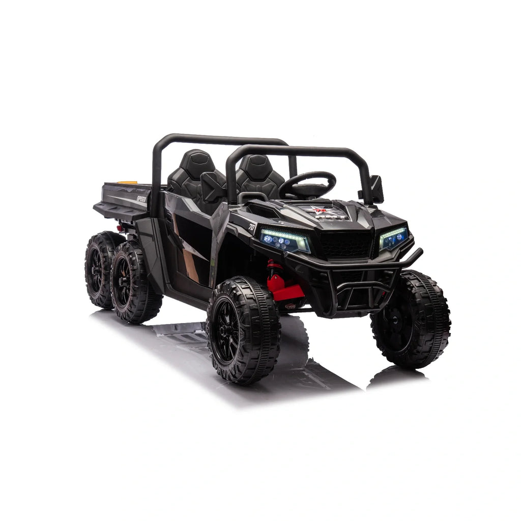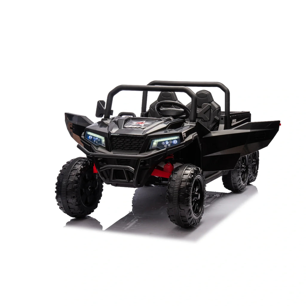 The Black 24V 6-Wheel Electric Dump Truck gives kids the power, size and control they need to enjoy realistic construction and farm-style play. With a 24V 7Ah battery and four strong 550 motors, this ride-on delivers steady performance on grass, dirt paths and backyard terrain. Its 6-wheel configuration improves balance and traction, helping young drivers handle uneven surfaces with confidence.
