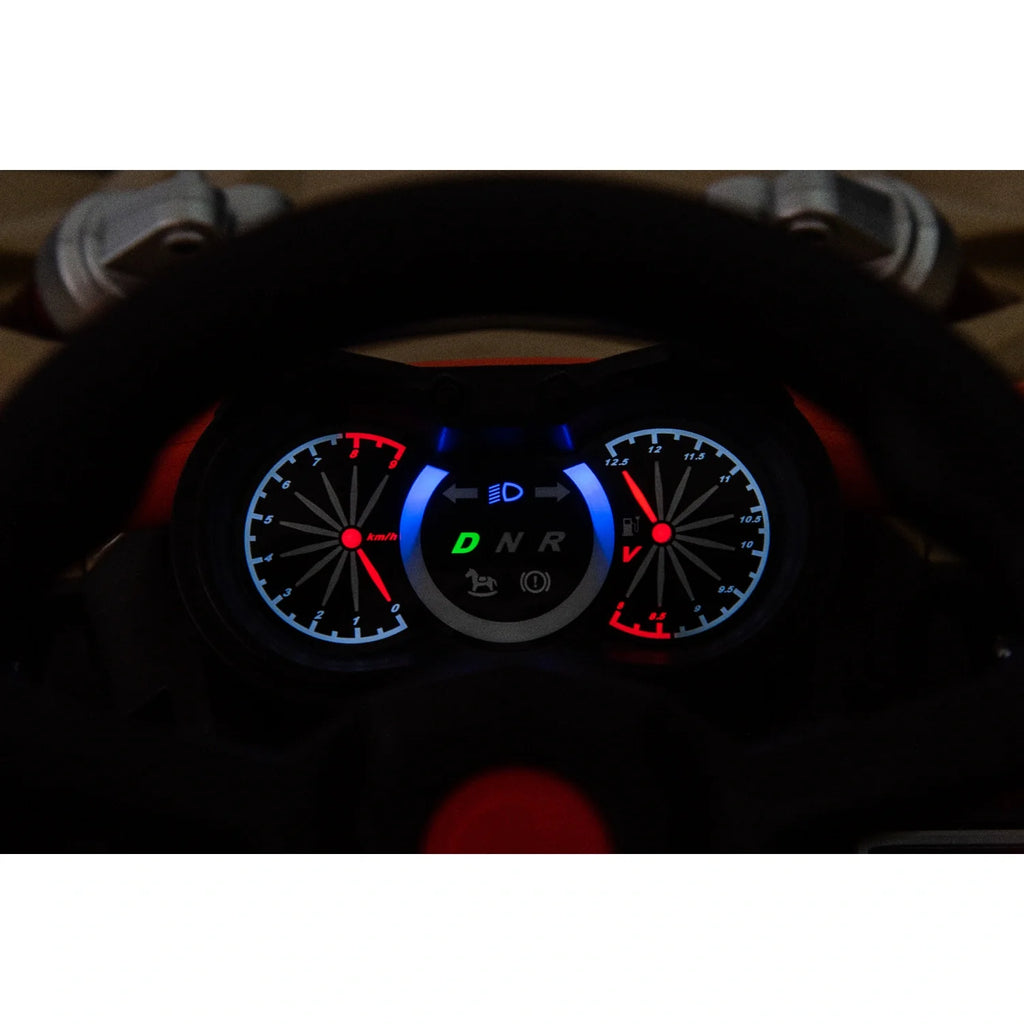 LED headlights enhance both the look and the play experience, while the leather seat ensures comfort during longer riding sessions. Simple forward/reverse controls allow young drivers to learn at their own pace.