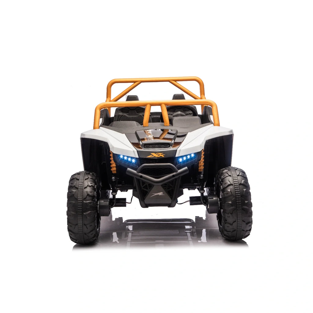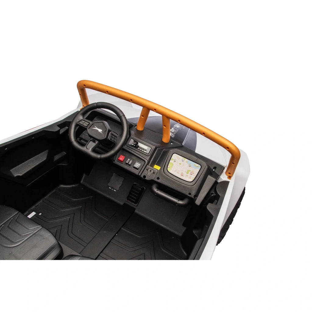 Large EVA wheels, selectable speed modes and true 4WD capability give this model excellent grip on grass, gravel and uneven surfaces. Designed as a reliable 24V all-terrain kids buggy, it handles outdoor environments far better than standard 12V toys.