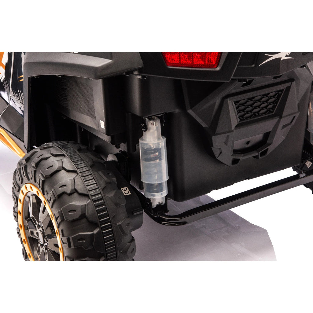 A spacious leather two-seat layout, paired with dual seatbelts and a steel-reinforced frame, makes this UTV perfect for siblings and friends. With a combined load capacity of up to 60 kg, it supports a wide age range, while the 2.4G parental remote ensures safe, supervised driving.