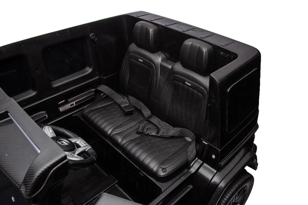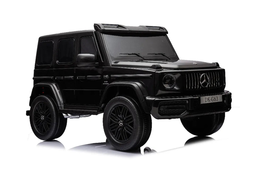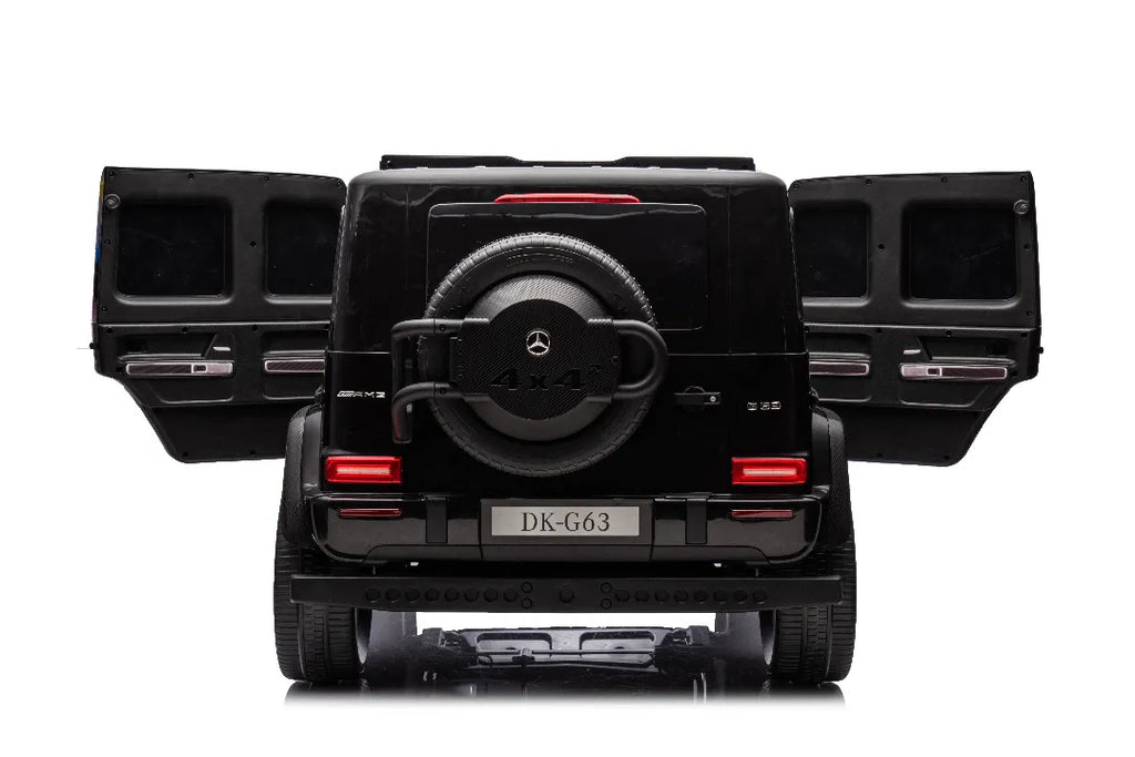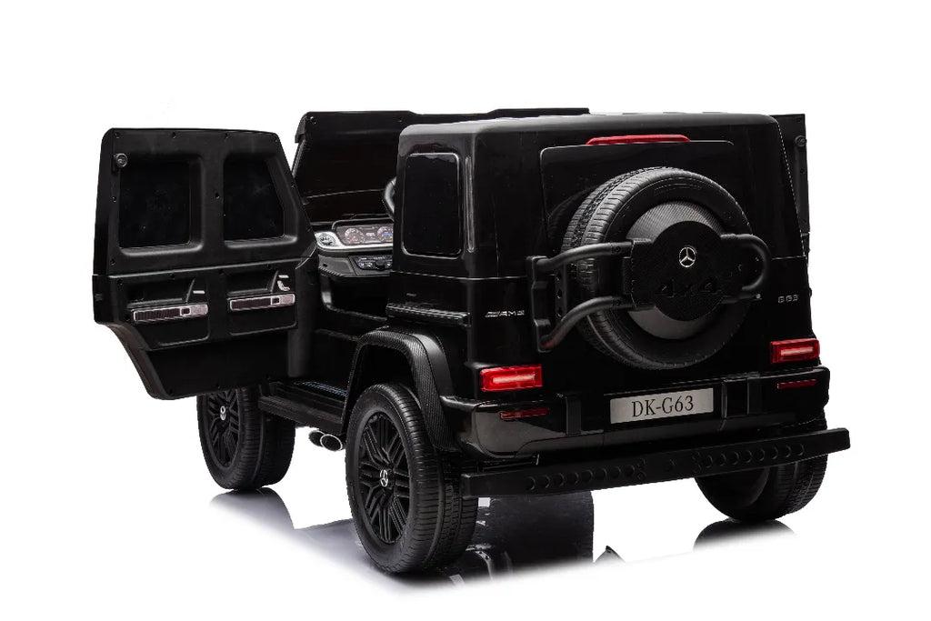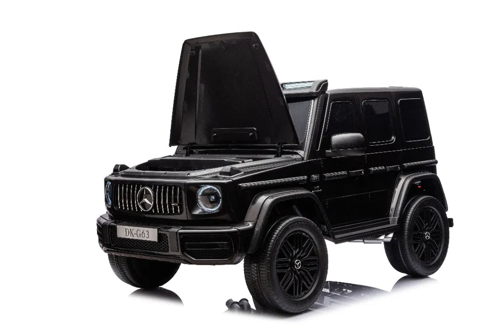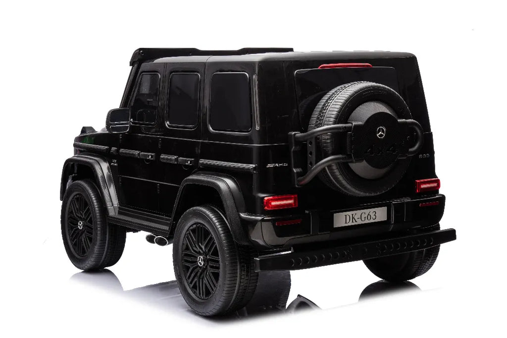 The Licensed 24V Mercedes-AMG G-Wagon G63 in Black delivers unmatched performance for young drivers who love luxury and off-road style. Equipped with a powerful 24V 14Ah dual battery system and four 200W motors (800W total), this ride-on offers strong acceleration, steady climbing ability and smooth control on grass, gravel and backyard terrain.