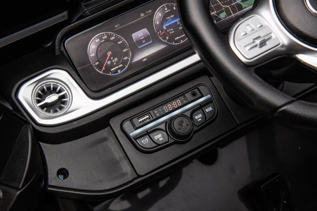 With Bluetooth, USB, FM radio and LED lighting, the G63 feels like a real mini SUV. Parents can take full control via the 2.4G remote, choosing high, medium or low speed for safe supervised driving.