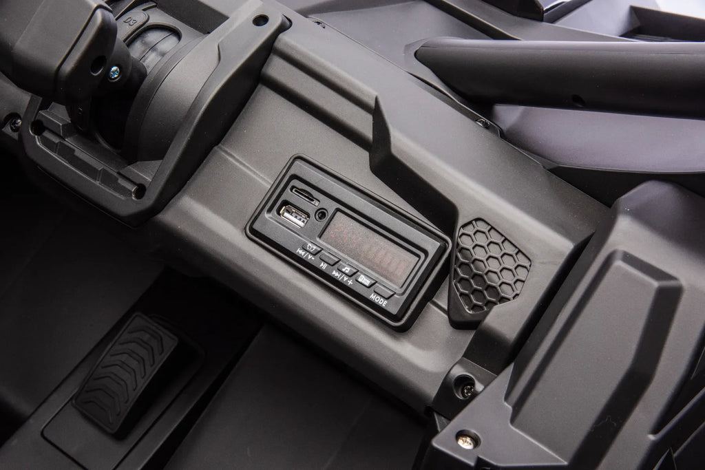 Kids can switch between manual mode OR full 2.4G remote mode, ensuring safe supervision. With Bluetooth, MP3, USB, AUX, LED headlights and realistic engine sounds, every ride feels like a true off-road adventure.