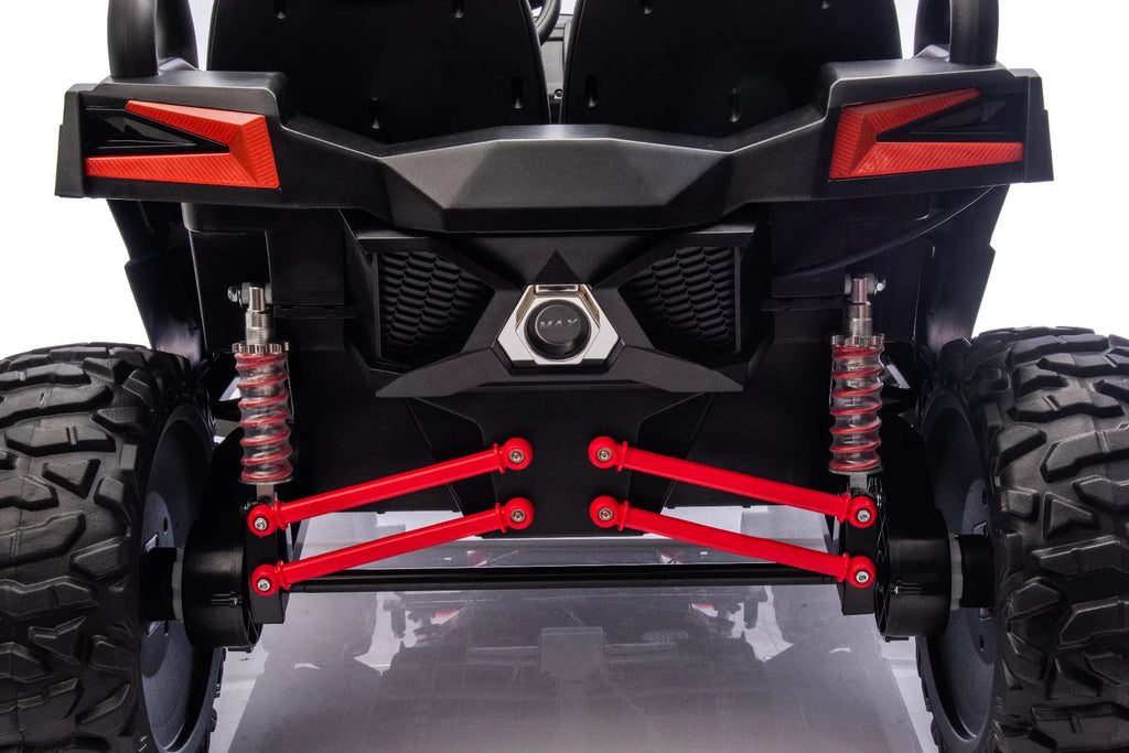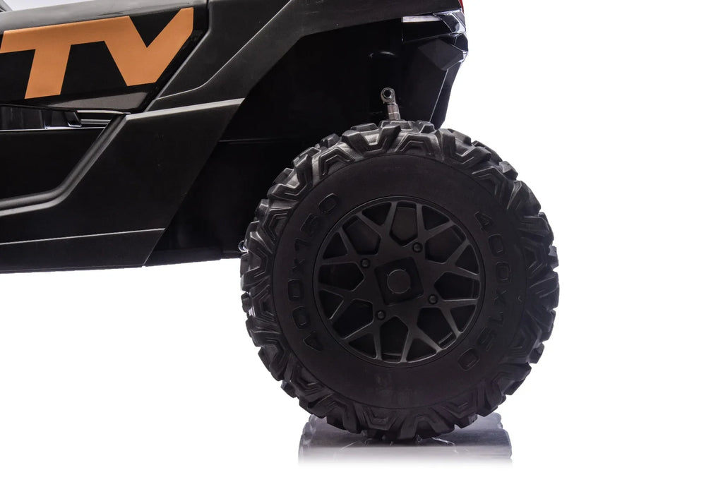 This model is designed to handle two riders comfortably, featuring leather-style dual seats, overlap harnesses and a fully reinforced chassis supporting up to 75 kg. Perfect for siblings or friends, the ZForce RZR Turbo Black is one of the strongest and most spacious kids’ UTVs available.