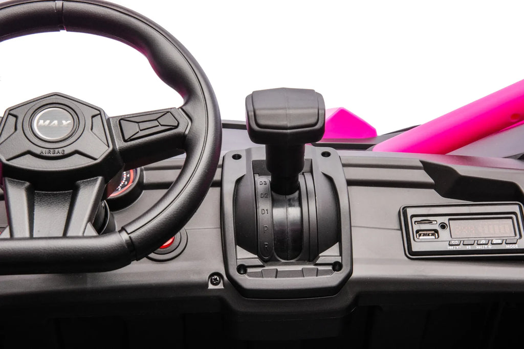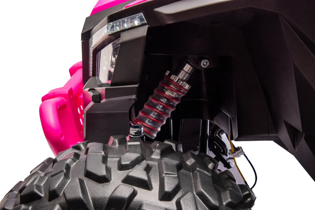 The 24V ZForce RZR Turbo Pink is engineered for kids who want big performance and parents who want reliability. Powered by a high-capacity 24V 14Ah battery and four 350W motors (1400W total), this powerhouse delivers strong torque, smooth acceleration and controlled top speeds of 8 km/h, 12 km/h and 15 km/h across open outdoor spaces.