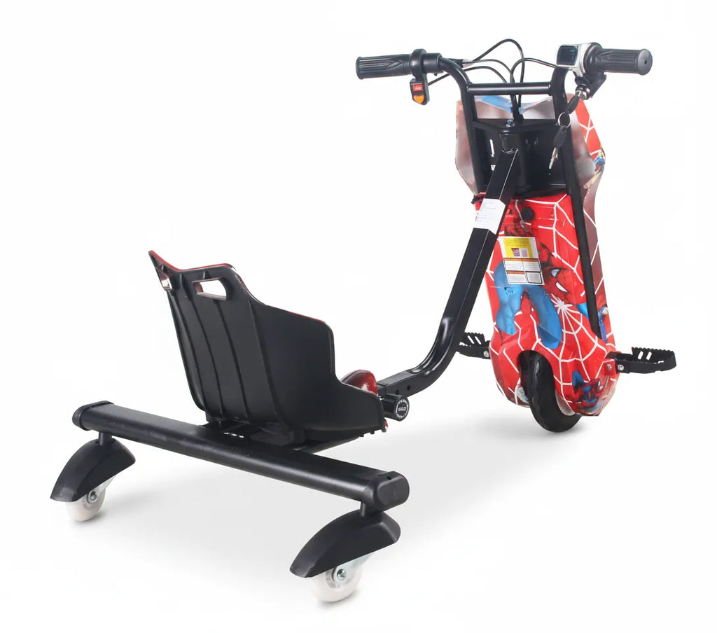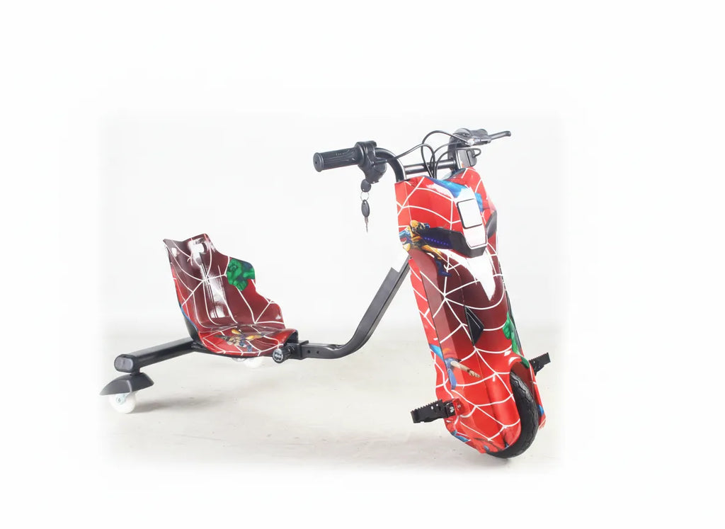 Bring superhero energy to playtime with the 36V Electric Drift Trike Red Spider Edition. This bold drifting kart features a web-themed red and black design that kids will love. Powered by a strong 250W brushless motor and a reliable 36V lithium battery, it delivers smooth acceleration and up to 90 minutes of continuous fun. With a top speed of 15 km/h, three adjustable speed modes, and caster-style rear wheels built for drifts and spins, the Red Spider Drift Trike takes ride-on excitement to the next level.