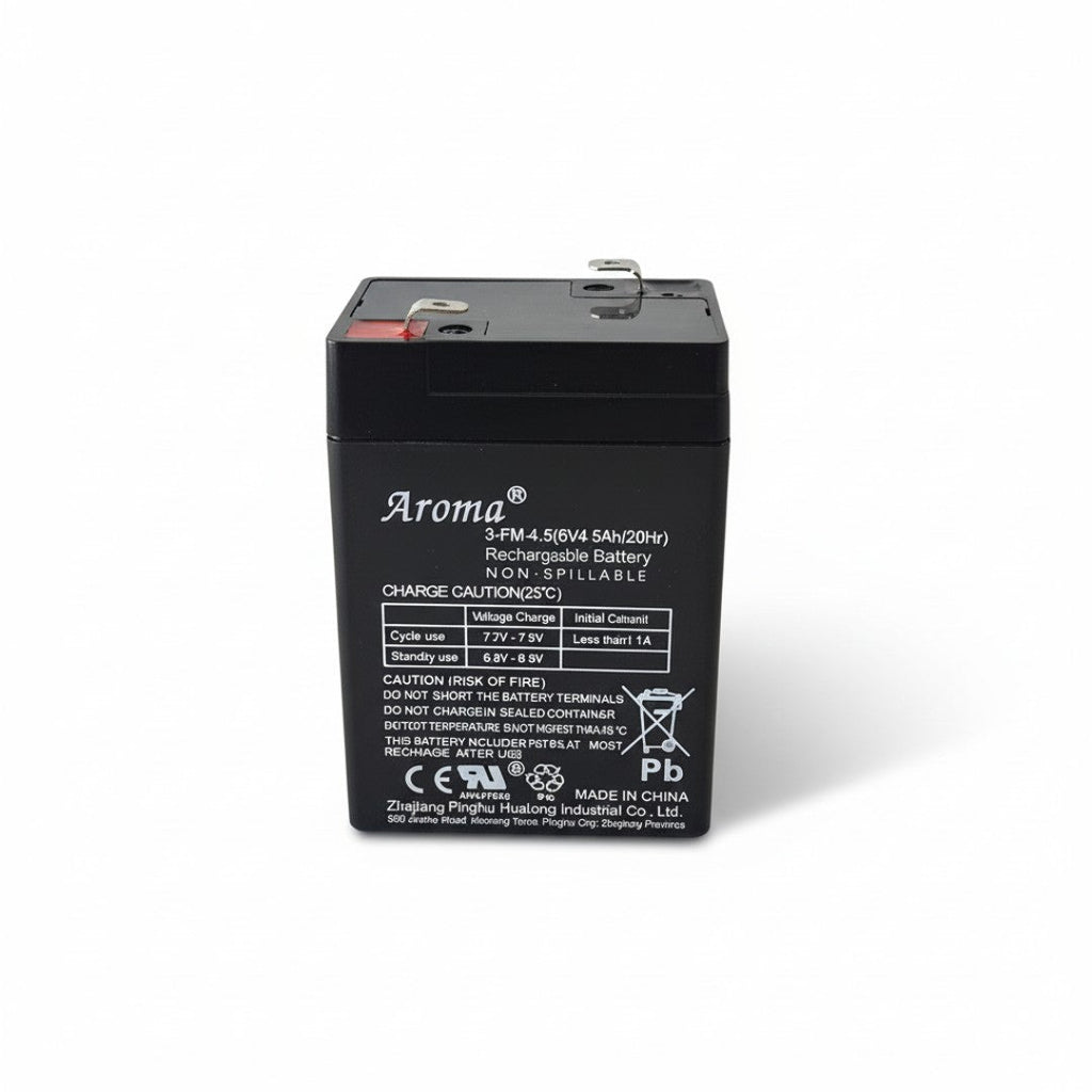 Power up your child’s favourite toy with this reliable 6V 4.5Ah sealed lead-acid battery—perfect for compact ride-on cars, scooters, and 6V electric bikes. Built for consistent performance and extended playtime, it’s an ideal replacement or backup for most 6-volt kids’ vehicles.